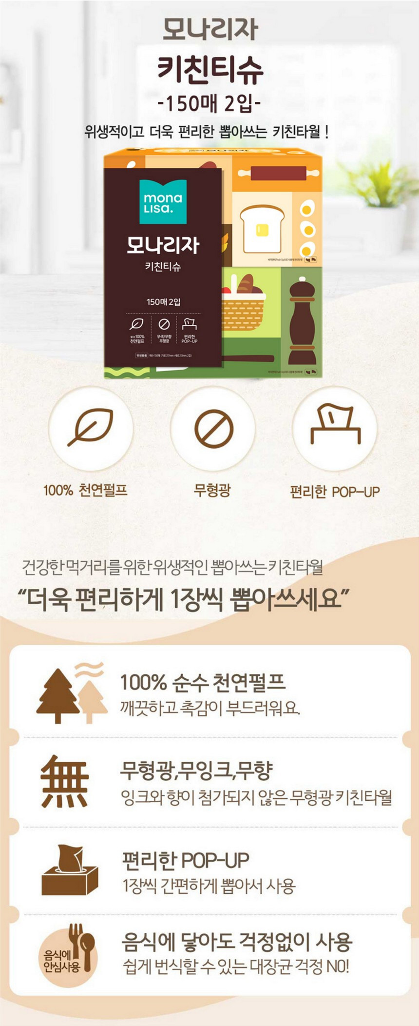 모나리자 키친티슈 150매*2입(115*235*240mm/2겹)