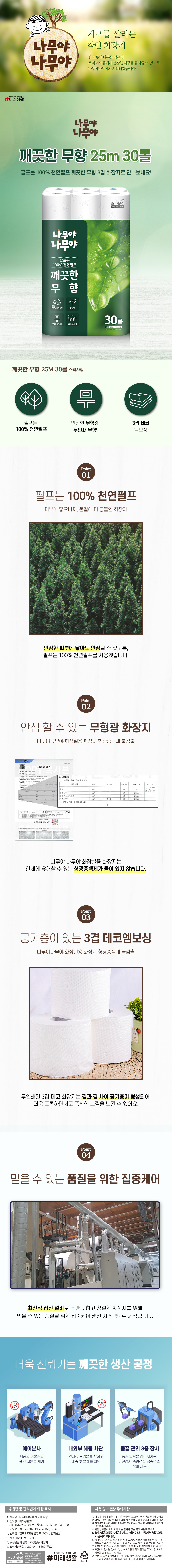 ■ 품명 및 모델명 : 나무야나무야 3겹 화장지(25m*30롤/천연펄프/무향/미래생활)