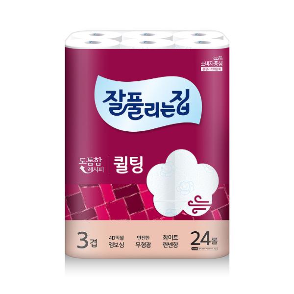 잘풀리는집 퀼팅 3겹 화장지(30m*24롤/무형광/화이트린넨향/미래생활)