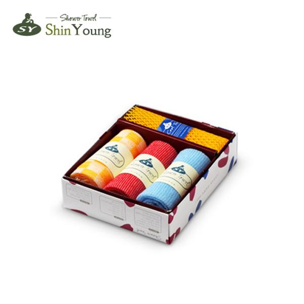 [업체배송]신영샤워타올 스페셜 선물세트 1호(샤워타올3종+수세미3종+쇼핑백)